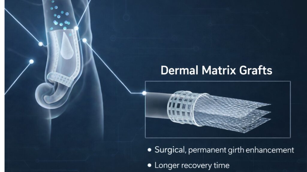 Dermal grafts are a surgical technique used in penile enlargement to increase girth (thickness) by placing biological or synthetic material under the penile skin. These grafts act as a structural layer designed to thicken the penile shaft.
